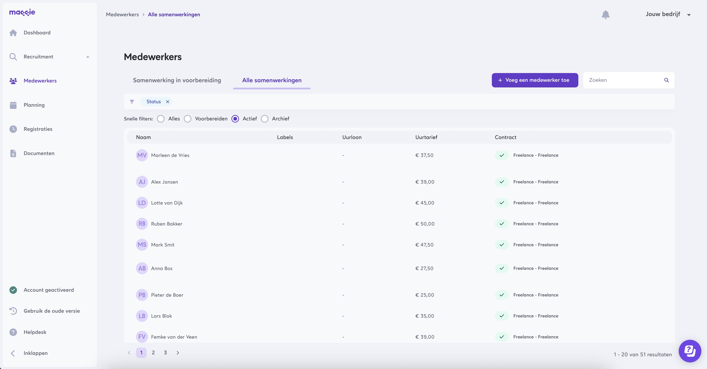 Maqqie is dé online oplossing om zelf contracten en uitbetalingen te regelen. Het aannemen, inplannen en uitbetalen van alle soorten medewerkers: personeel, flexwerkers of zzp'ers.