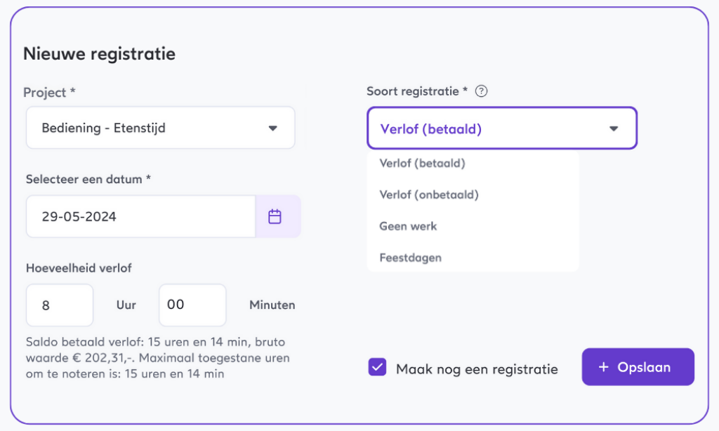 Medewerkers houden eenvoudig uren online bij. Ook is het mogelijk automatisch uren te herhalen. Na jouw goedkeuring wordt het doorgevoerd in de wekelijkse of 4-wekelijkse betaling.
