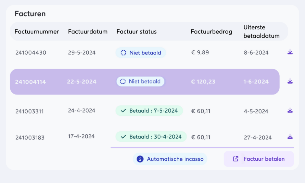 Je medewerkers ontvangen hun uitbetaling per week of 4 weken. Ook loonstroken en jaaropgaves zijn direct beschikbaar. Jij ontvangt al je loonkosten op één overzichtelijke factuur.