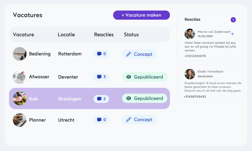 Direct exclusieve toegang tot 50.000+ medewerkers. Van vast tot tijdelijk, van uitzendkracht tot zzp'er. Deel vacatures voor nog meer bereik via bijvoorbeeld Google of Indeed.