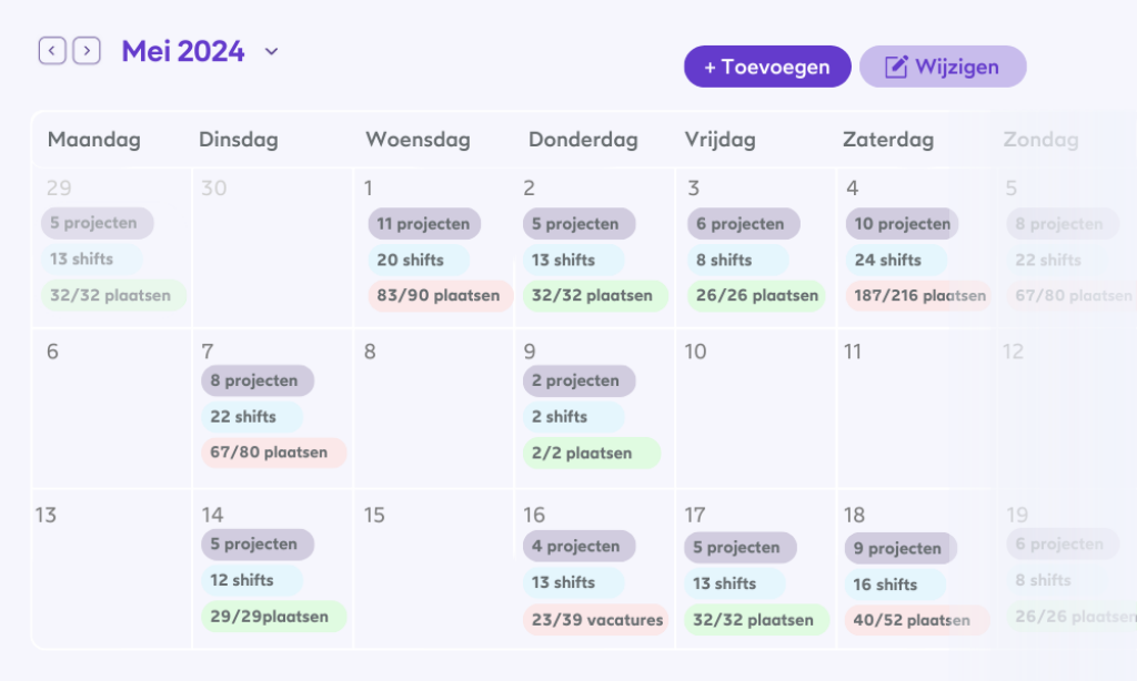Werk je in meerdere projecten of evenementen? Dan plan je eenvoudig je medewerkers per project of evenement.