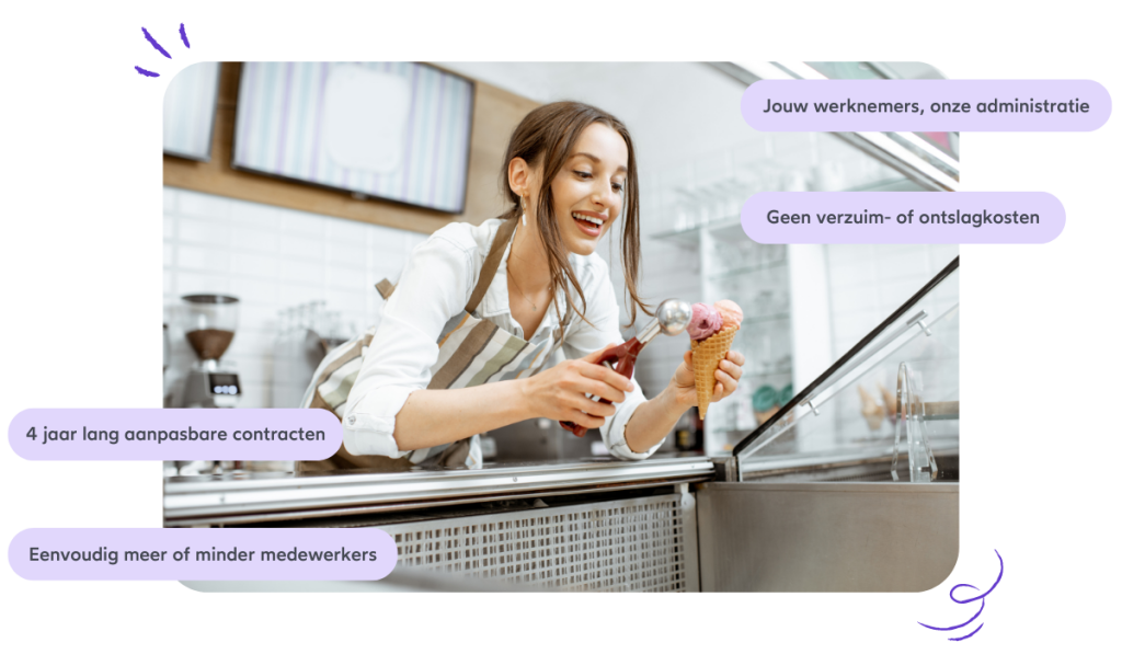 Via Maqqie kun je eenvoudig op- en afschalen met je personeel. Wel zo handig, gezien de seizoensgevoeligheid van IJssalons. Zorg voor maximale flexibiliteit conform uitzend-cao en maak je niet meer druk om je personeels- en salarisadministratie.