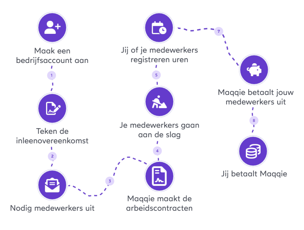 Bij payrolling besteed je alle verplichtingen die je als werkgever hebt uit aan een payrollbedrijf (in dit geval Maqqie). Jouw bedrijf (= de inlener) betaalt een fee aan de payroller en de payroller regelt vervolgens je personeels- en salarisadministratie. En daar merken je medewerkers niets van, want in de praktijk blijf jij voor je medewerkers de werkgever. Ze blijven gewoon bij jou werken zoals ze gewend waren.