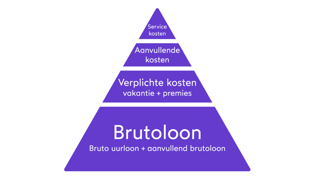 Payroll kosten bereken je door het bruto uurloon te vermenigvuldigen met de omrekenfactor (ook wel payroll factor genoemd). Wanneer een medewerker dus €10 per uur verdient en het payrollbedrijf heeft bijvoorbeeld een omrekenfactor van 1.67, dan zijn de payroll kosten per uur €16,70.