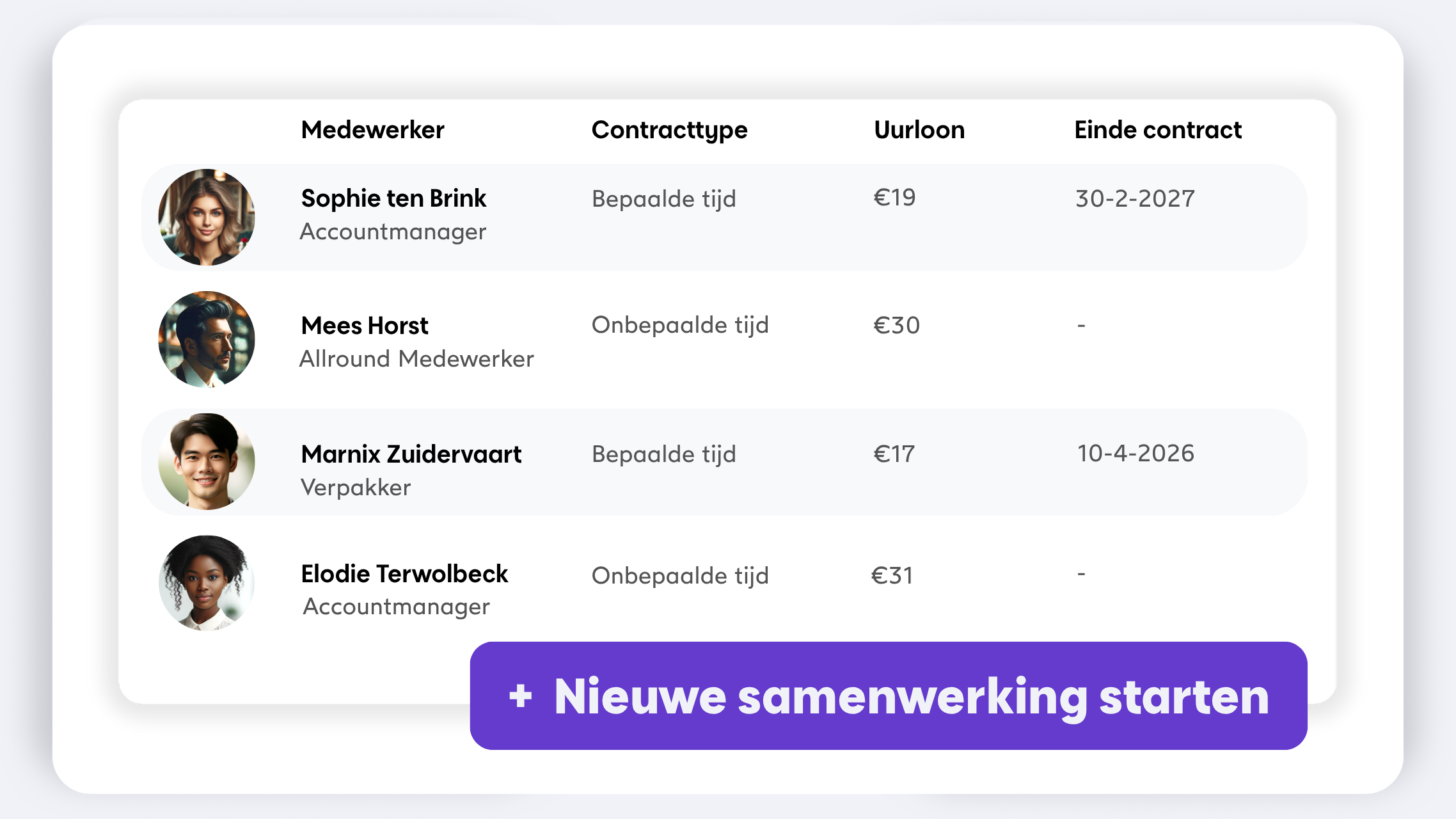 Eenvoudig contracten opstellen, uren registreren en uitbetalen.