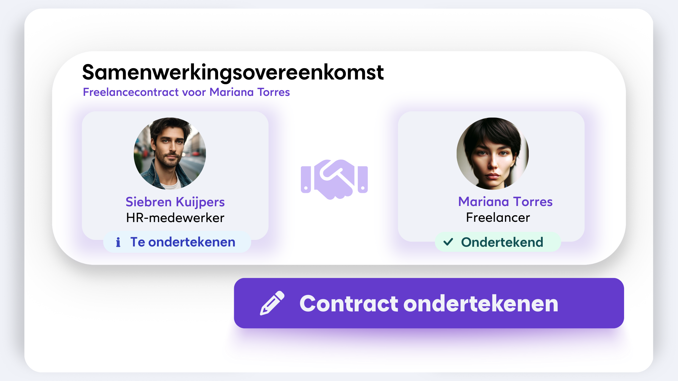 In één overzicht zie je alle zzp’ers, registraties, contracten en facturen bij elkaar. Geen losse Excel-bestanden of e-mails meer. Zo heb je altijd realtime inzicht en grip op je samenwerking met zzp’ers.